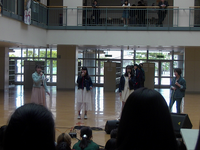 5月17日(金)の昼休みに合唱部による本年度2回目のパフォーマンスがアトリウムにて行われました。今回が新入生のデビューということで、緊張している様子も見られましたが、たくさんの観客たちに美しいハーモニーを届けてくれました。