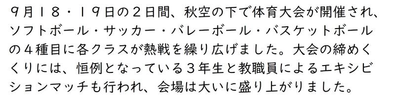 体育大会 投稿日時 : 10/16 イベント記事更新・運営管理係 ※掲載している画像はPTAの保護者により撮影されたものです。 Tweet {{options.likeCount}} {{options.likeCount}} {{options.unlikeCount}} {{options.unlikeCount}} 0 コメント