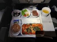 長時間のフライトということで、機内食をいくつかいただきました。ベジタリアン向けでしたが美味しかったです。