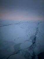 国際情勢の影響なのか、飛行機の航路はシベリアを避け、北極海を通りました。 その際に海面に浮かぶ氷河の観察を楽しむことができました。