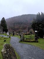 そうこうして辿り着いたグレンダロッホ。5世紀に聖ケビンによって開かれキリスト教の巡礼において重要な場所だった、とのことですがご覧の通り大量の墓石が突き刺さっています。まさかの観光地が丸ごと墓地という珍事。これにはびっくりしました。ちなみに長生きしたり金持ちだったり偉かったりすると教会の中に埋葬してもらえるらしいですよ。